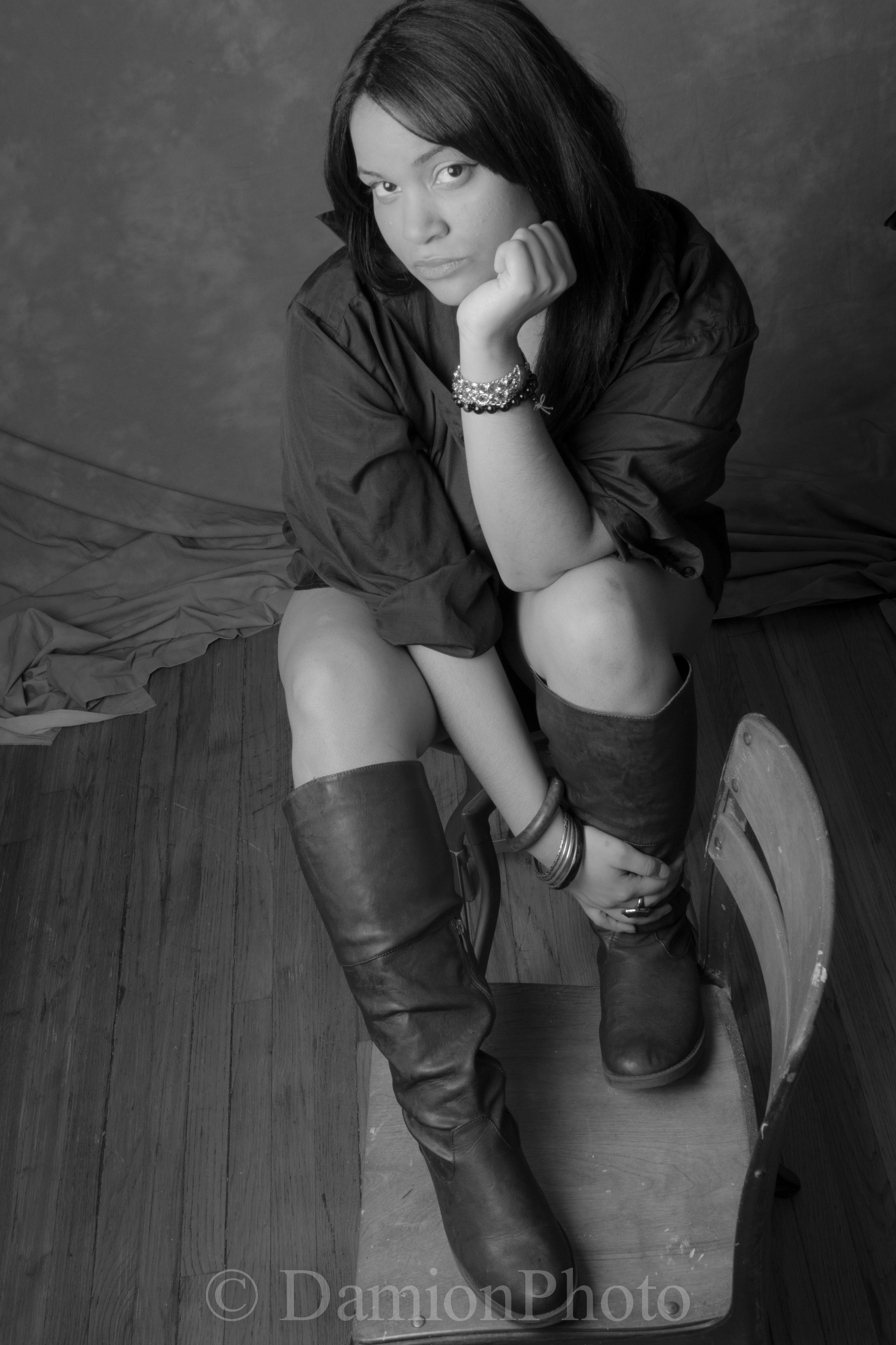 Slowly but surely I’ve been getting back to the studio, trying new things and experimenting with different lighting techniques. At the same time, I’ve been trying to cut down on shooting time and concentrate on producing better images. This past Sunday I tried some new things while working with a new model. During what seemed like a very short session we tried different lighting angles and took advantage of my rather nice wood floors and her very sexy boot. Denise was very versatile, laid back and fun. We laughed, shared stories and listened to the likes of Radiohead and Quicksand. Before our session was over, we were already talking about working together again in the near future. Not bad for a couple of people who had met just minutes before.